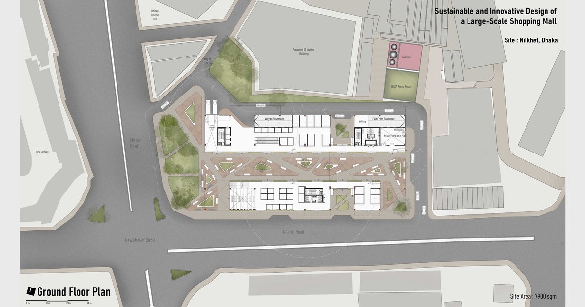 The reimagined Nilkhet Books Market blends tradition with modernity, offering ample natural light, diverse gathering spaces, and spacious shopping areas. With restaurants, safety measures, and an emphasis on sustainability, it transforms into a vibrant urban hub, ensuring accessibility and well-being for all, while preserving its charm in Dhaka's heart