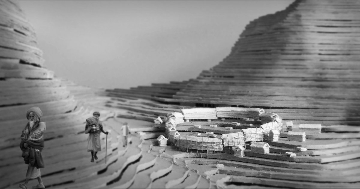 The most unique aspect of the entry is that, it dares to strike a 'scaled unified gesture' with the colossal mountainscape around, to dialogue and resonate with its sublime / dynamic /seasonal nature . The project is notable to be able to recognise this need for symbolic / bold anchor and choosing to answer this by the profound simplicity and powerful geometry of "circular fortress" , which is then translated as ring pavilion. Though scale of the ring remains questionable , it design does provide a semblance of a grand maidaan, up in the hills 'a charged ground' full of bustling human activity. The re-interpretation of the conventional model of ground occupying tents is done skillfully into a stacked arrangement and thereby creating a completely a new experience of community interaction INSIDE the pavilion ( in corridors / kitchen) and the OUTSIDE it in open ground. Also its heartening to see the effort of making of a physical model by the participants that shows an evolved awareness and appropriate response to topography by the circular form being stepped and therefore expressing it as non rigid , sublime and poetic. The simplicity of the presentation is refreshing. The resolution in terms of telescopic vertical growing system is well thought of and real enough to be adopted as a practical idea, even though expensive . The realisation of leaving such a structure in place keeping the circular footprint is intact is apt, and highlights a way for humans to build in such terrains , that it must be is scaffolding like , temporary and BY nature having a very light presence .