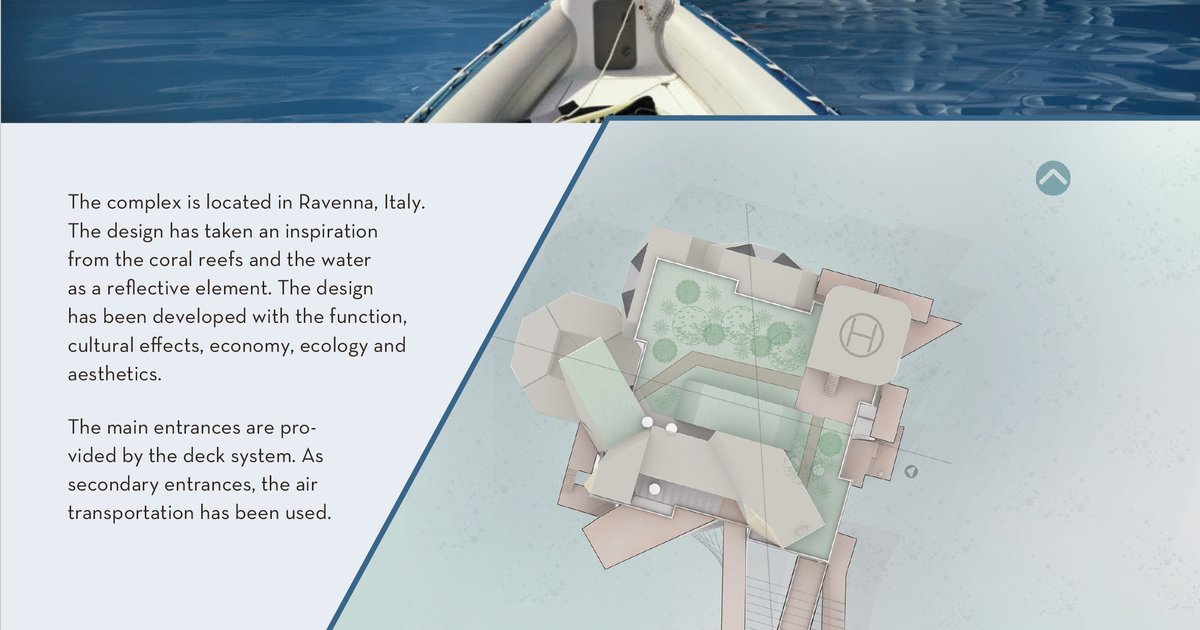 The design has taken an inspiration from the coral reefs and the water as a reflective element. The design has been developed with the function, cultural effects, economy, ecology and aesthetics.