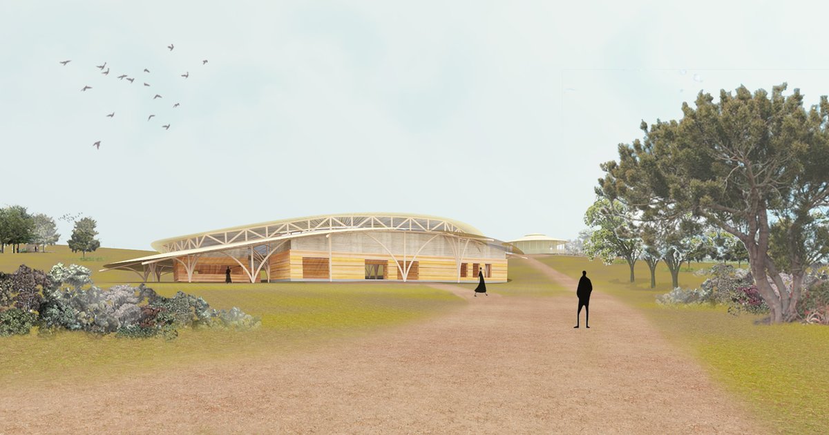 Community centre with a forest chapel located on a plot in Bole, Addis ababa, Ethiopia. The chapel is located in the centre of the site, which is also its highest area. This way it is embraced by the forest and protected from the noise and pollution. The community centre is by the entrance of the site.