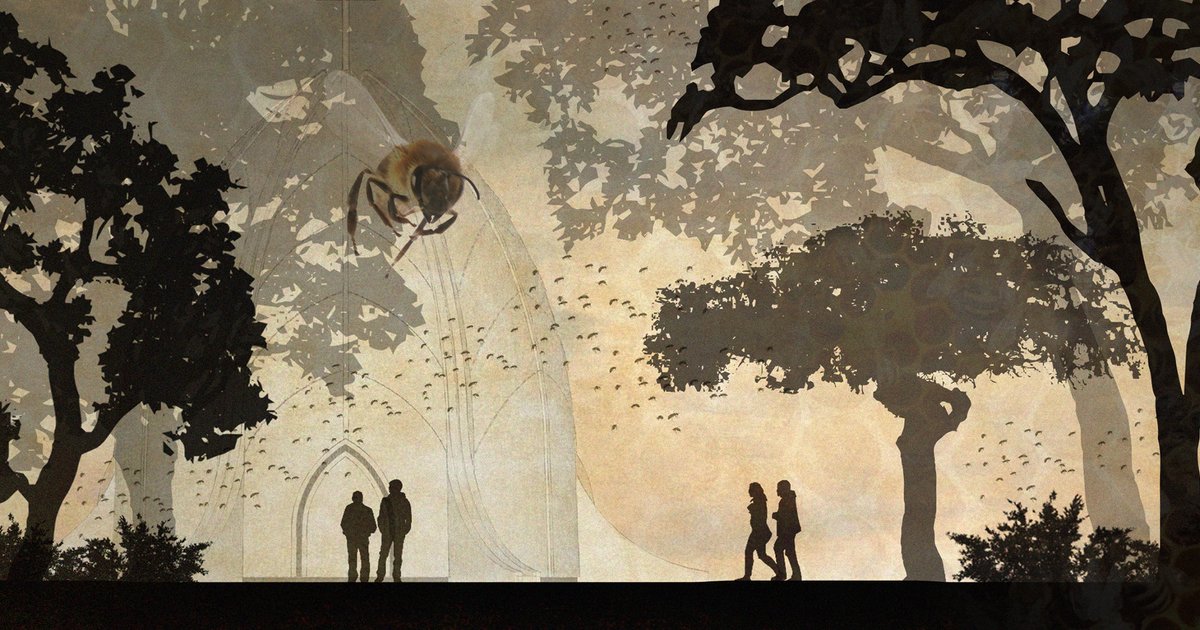 The combination of respect for local traditions, the inclusion of bee colonies (during trying times across the globe for them), and the focus on water collection in an area where water can be scarce is outstanding. This is such a fantastic design.