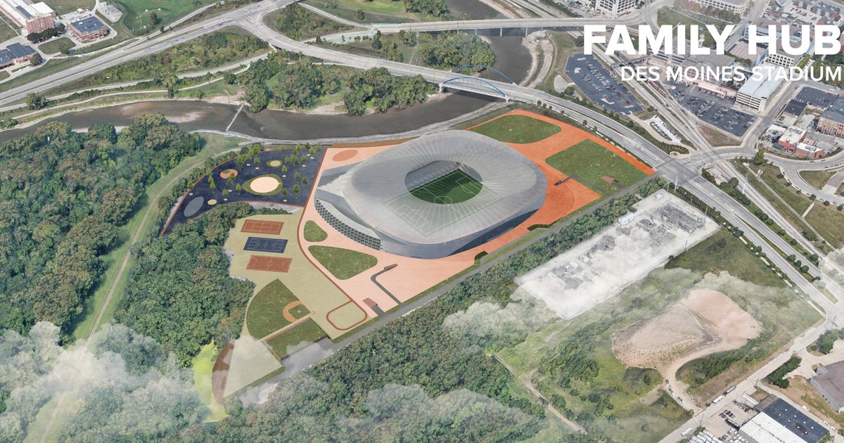 The concept is to create a contextual mixed-used stadium in the city of Des Moines, USA, which, thanks to a large number of additional features, would be interesting not only for fans, but for locals, tourists, and, especially, families with children.