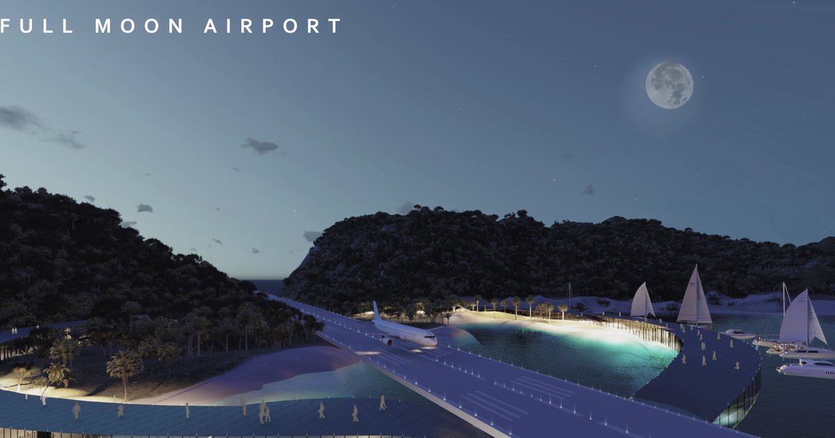Koh Phangan Airport, Thailand: The main concept behind the airport is to capture the beauty of the island of Koh Phangan. To show this beauty in the best possible light, we positioned the airport in the form of a full circle between land and sea. As such, it encloses the water, forests and beaches.