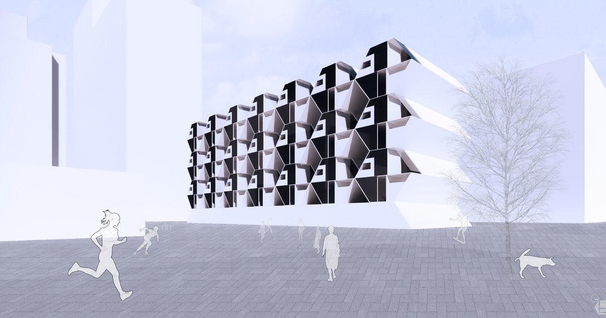 Abbreviated as HAH for 'hexagonal affordable housing', the design is for a mid-rise residential building comprised of 84 trapezoidal housing cells that are attached to a structural grid and slide in and out, much like drawers in a dresser. It explores various lighting concepts and the Japanese shinchintaisha movement through a modern, technological lens.