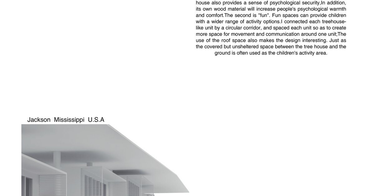 Like a collection of treehouses, this building stands high and upward, far from the noise and restlessness of the ground, closer to the serenity and tranquility of the sky.It provides shelter for children and nurtures their wounded feelings