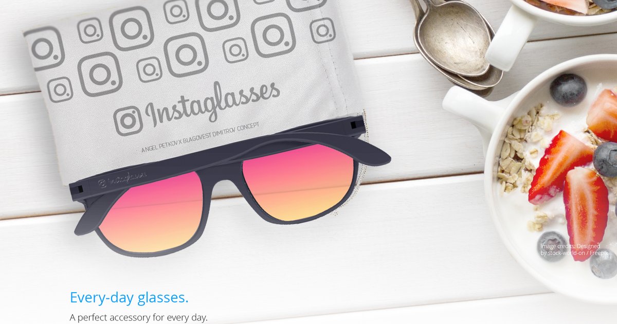 ? visual perspective of two crazy designers about Instaglasses. ?he project is non-commercial and it has nothing to do with Instagram. The glasses will not go into production. Link to full project here: https://www.behance.net/gallery/56552397/Instaglasses