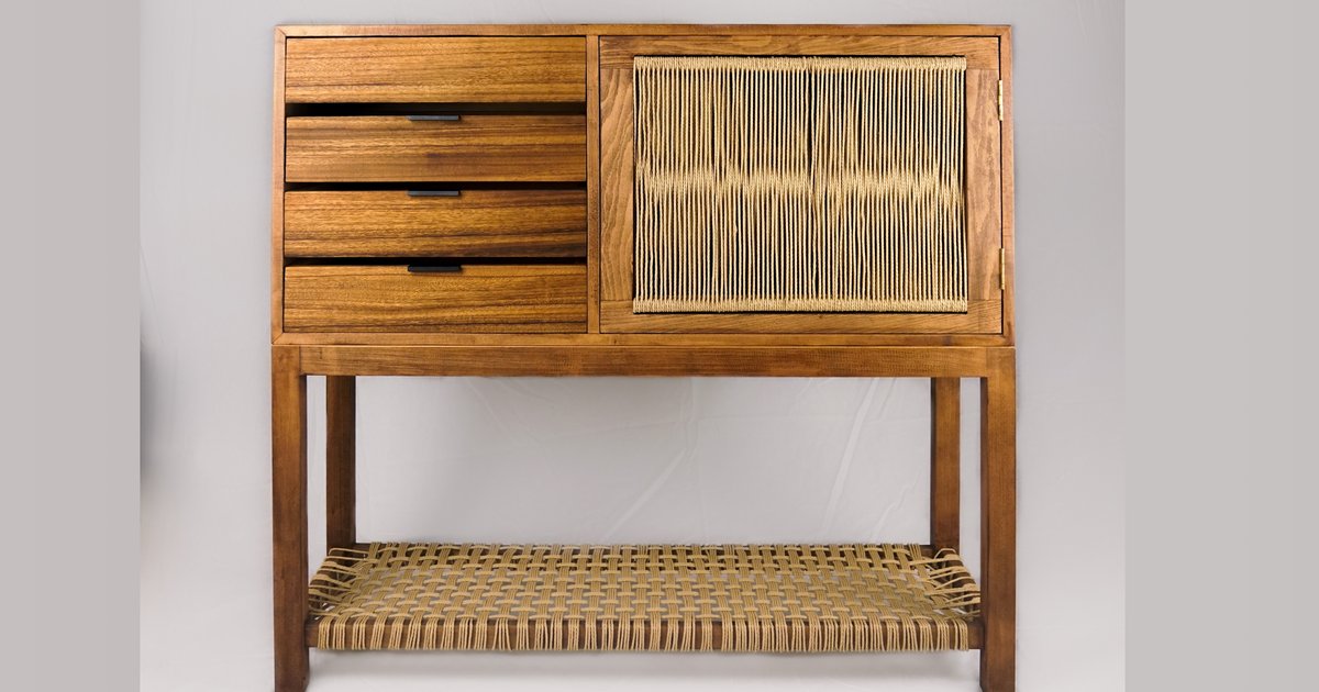 Designed to bring simple storage solutions to small spaces, this warm entry console provides the opportunity to tuck away your bits & bobs and jointly display your household favorites. The stained beech frame, Hawaii-grown monkeypod drawer fronts, hand woven cord shelf & cabinet door of laced Danish cord provide a one of a kind handmade accent to your home.