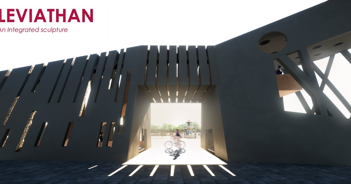 LEVIATHAN is a continuous and integrated architectural sculpture which seeks to draw inspiration from both the symbolic and concrete attributes of the context to create a series of spaces which correspond to a greater whole.