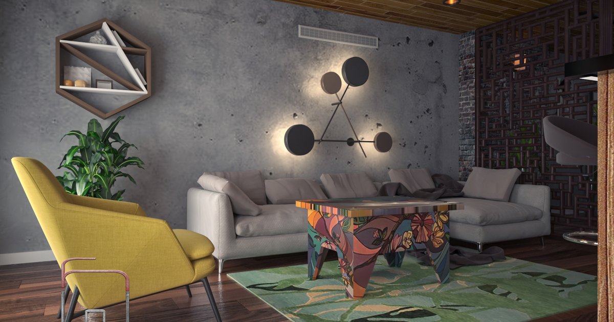 This picture contains a ladder and entrance to the villa and the words of a wooden staircase and the wall contains boxes of wood with backlighting with the addition of some frames on the wall of the ladder to give her aesthetic form