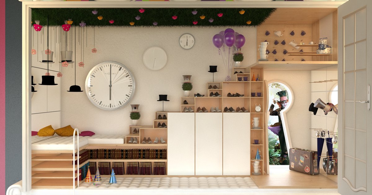 The concept behind the project was the personality of the Mad Hatter, an eccentric and irreverent character. We created a pallet of colors inspired in the character of Tim Burton’s story, so the result was a colorful palette that we mixed with a neutral color; using the white color was to evoke the idea of being immersed in the madndness of the Mad Hatter.