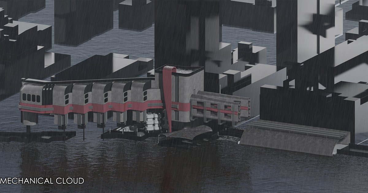 The Mechanical Cloud is a conceptual work of architecture designed to protect the residents of Manhattan from the dangers that climate change poses to the island in the not-so-distant future. The Mechanical Cloud is built upon the High Line in New York, which provides an escape from the rapidly rising sea levels.