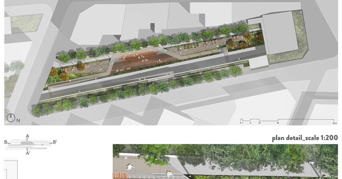 The intervention interprets and enhances the spirit of the site. The aim is to create a place of "refuge" from the stress of the city, where urban life can take place at a slower pace while surrounded by nature. A place that allows for limitless arrangements of the space, and different "intensities", depending on the activity taking place.