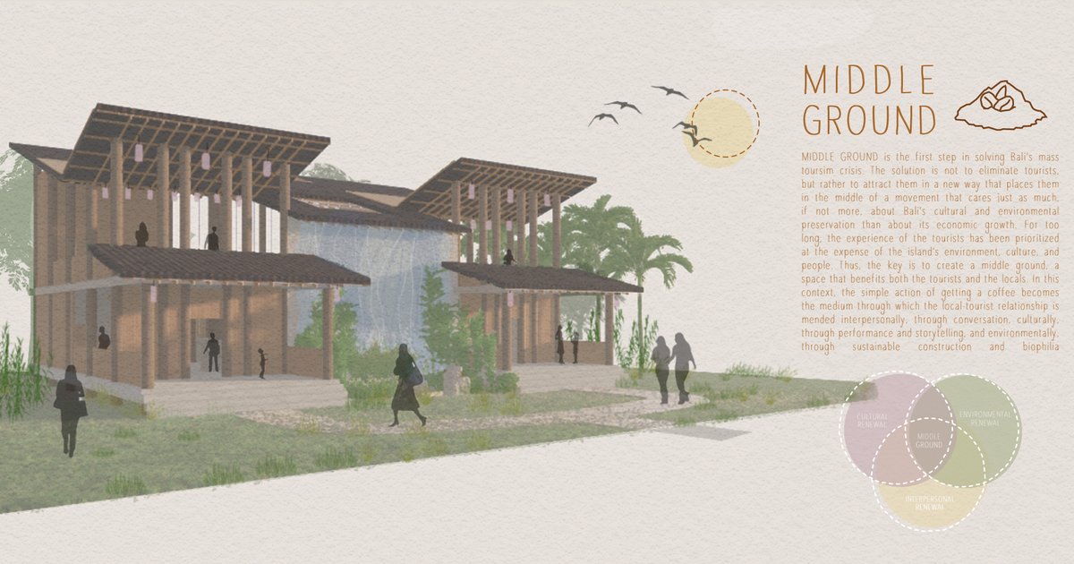 In an island struggling with mass tourism, Middle Ground seeks to be one of the first architectural expressions of a movement hoping to renew the local-tourist relationship on an interpersonal, cultural, and environmental level.