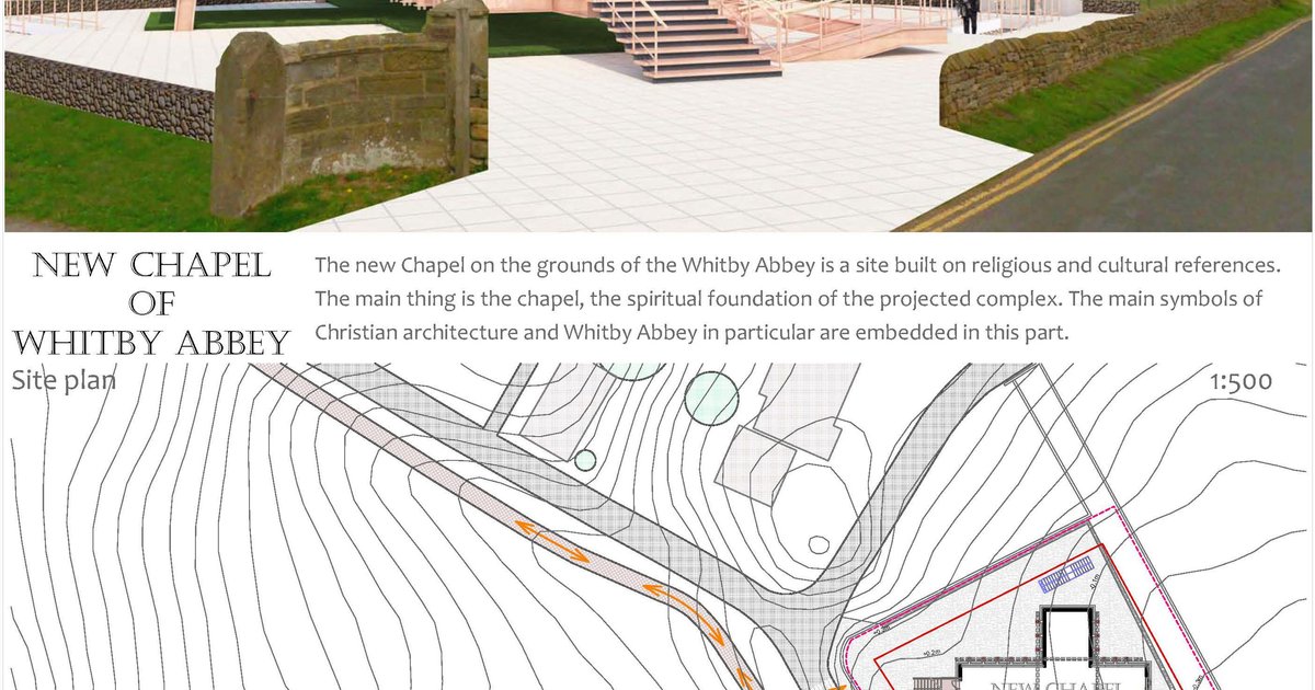 The new chapel on the grounds of Whitby abbey is a site built on religious and cultural references. The main thing is the chapel, spiritual foundation of the projected complex. The main symbol of Cristian architecture and Whitby abbey in particular are embedded in this part.