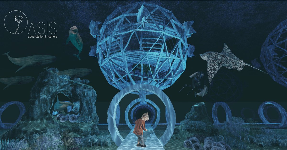 OASIS is a response to global warming and overpopulation. The sphere is located on the continental shelf of the Pacific Ocean. Its interior is independent eco-system that creates friendly living conditions under the water. Sphere can accommodate family of six or group of scientists.