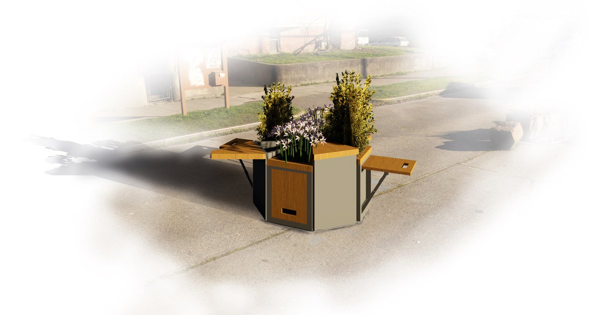 The OctaFold is a multi-use urban relaxation station. Due to its nature of being a large scale planter, seating, table space or any combination of uses the OctaFold can turn any urban space into a place that people feel they can be in.