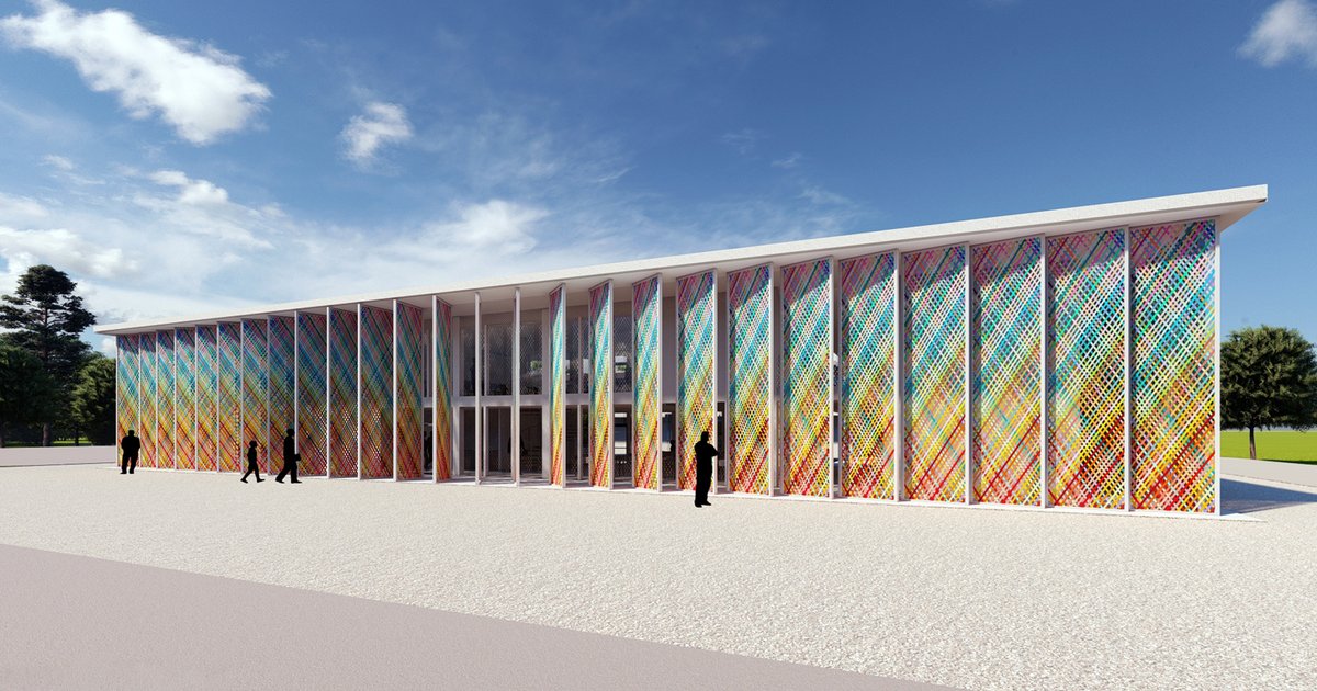 The building inspired by Indian traditions and local arts in India by using recycled materials.