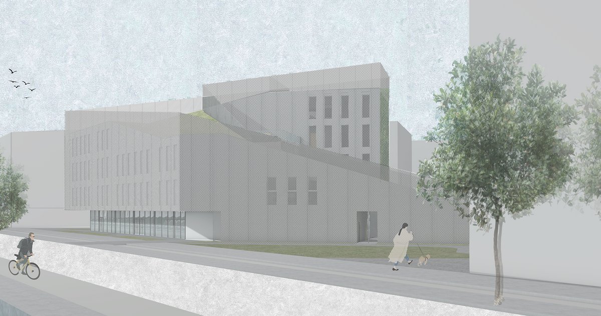 The main idea was to design a landmark, fulfilled into surrounding. Community Center is characterized by sloped, green roof. Building has huge impact not only on adaptability and interaction between people but also on their product. The creation of the space will enable students from abroad to overlap with inhabitants and open gateways into local community.