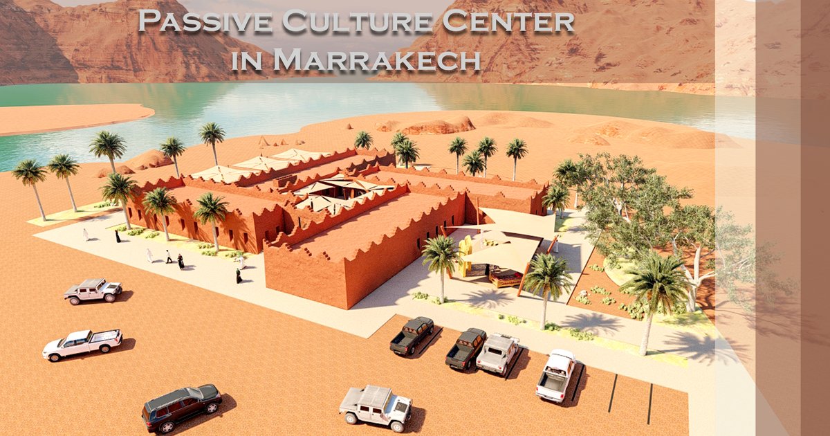 The concept of the passive culture center is influenced by Marrakech vernacular architecture and adapts to the harsh and severe climatic conditions in this region. It adopts several environmental treatments that control thermal comfort inside the building, reduce energy use and promote sustainability.
