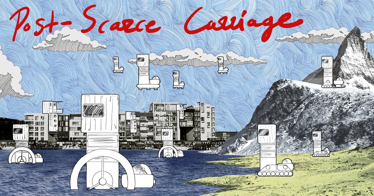 Post-scarce carriage is a nomadic modular habitat based on principles of communal living that transcend the urban-rural distinction. It is conceived in a hope-punk frame of reference and proposes an alternative to the typical sci-fi dystopian imagery on technology and its implications.