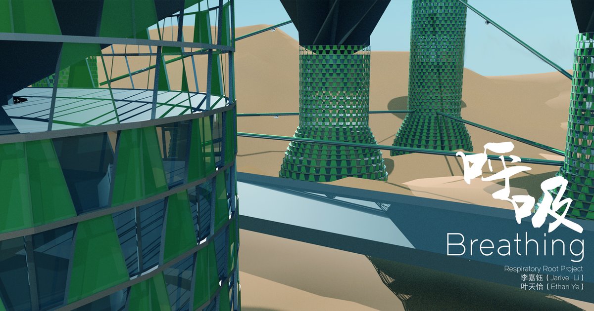 The keywords of our design are life and connection. The pursuit of our design is the romantic concept of turning desert into sea. We take the approach of modularization design: the entire habitat is composed of basic units - the towers, the shape and functions of which are inspired from the aerial roots of banyan and respiratory roots of metasequoia.