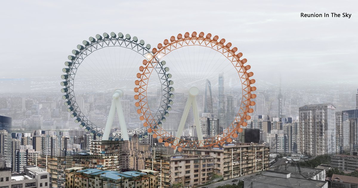 Death to all of us means another world, which would be connected just when people come to commemorate them. People hope to find a connection with them. The design uses two highly memorable ferries wheel, which coincide at one point. Infrastructure is behind the wheels, which is faced by old residential building. The body depository is under the ground.