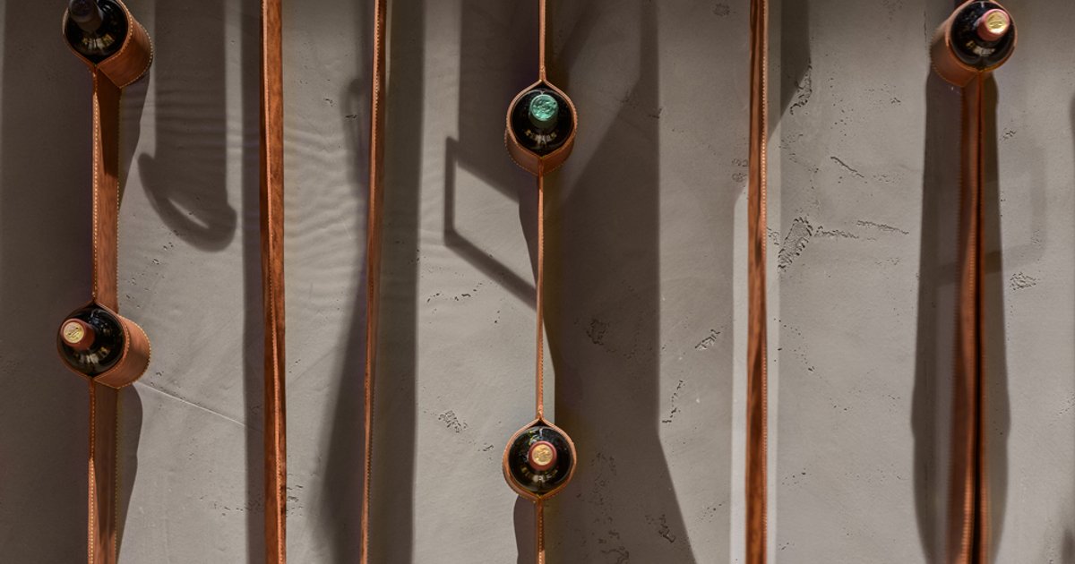 The RIBBON wine holder was inspired by the work on the interior for the BULL Butcher and Wine restaurant. This solution not only reliably fixes bottles with a valuable drink, but also looks quite impressive. The use of many such tapes opens up endless variations of the interior design.