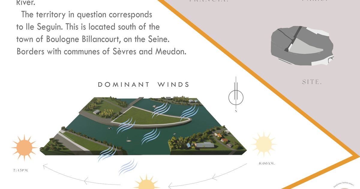 The project is about a fashion convention center in Paris, the city of fashion. It takes place in a new environment, in connection with the environment and the Seine River, in addition to creating sustainable and environmentally friendly spaces.