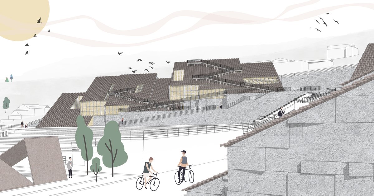 This project is a demonstration of how obsession with surface can produce a nuanced variety of spacial and organizational invention. It is easy to imagine living and gathering in these spaces individually while it also frames a compelling collective experience. The drawings and boards are stunning and consistently descriptive. The project re-imagines the often problematized dichotomy between a strong form, or series of forms, and a landscape. The buildings have both their own functional and formal integrity and produce a surprising constructed landscape.