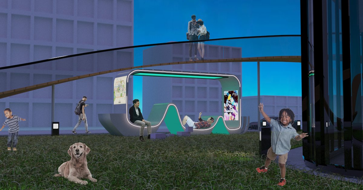 The design strategy was to return to the previous and simple design, and then make the spacing between the chairs and some of them so that the distance is sufficient to implement the needs and at the same time is safe in terms of spacing, the last step is to make another activity inside the bench and this overlap was games for children