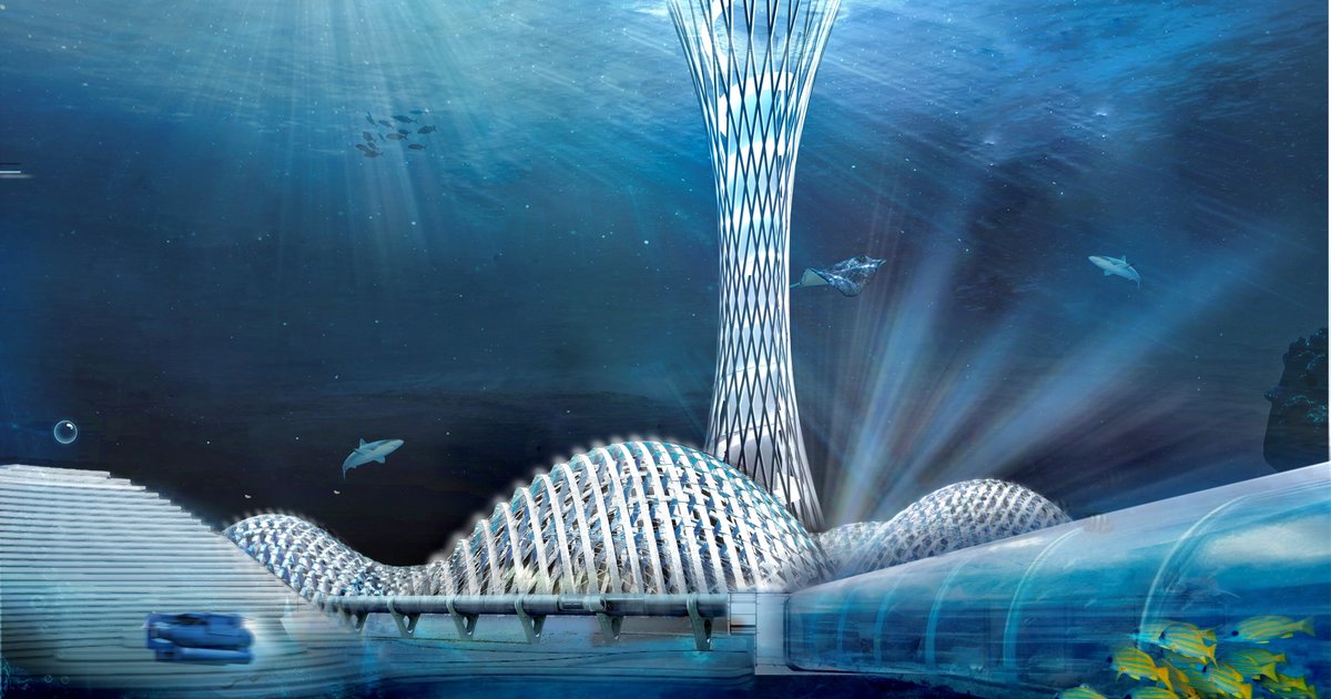 Suichi is a city of futuristic ocean buildings made from 3D-printed plastic waste from the Pacific which extend 300 meters below the water's surface. The project imagines a series of dome marines that would sustain the crustacean form of life. This newly invented urbanization is entirely self sufficient and energy efficient.