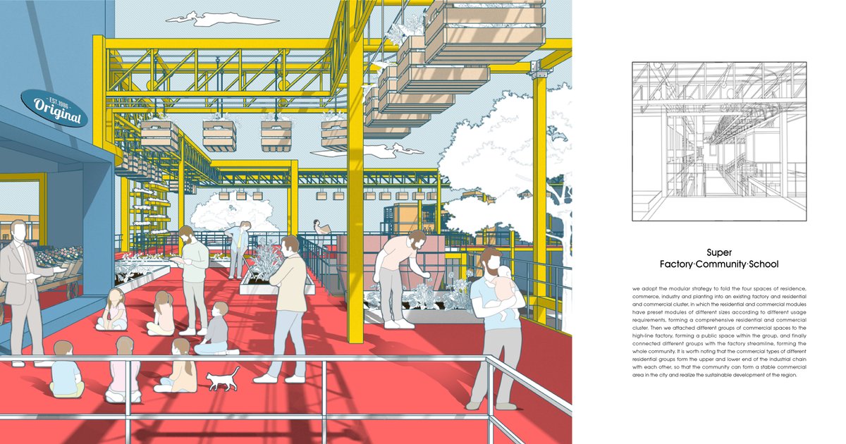 we adopt the modular strategy to fold the four spaces of residence, commerce, industry and planting into an existing factory and residential and commercial cluster, in which the residential and commercial modules have preset modules of different sizes according to different usage requirements, forming a comprehensive residential and commercial cluster.
