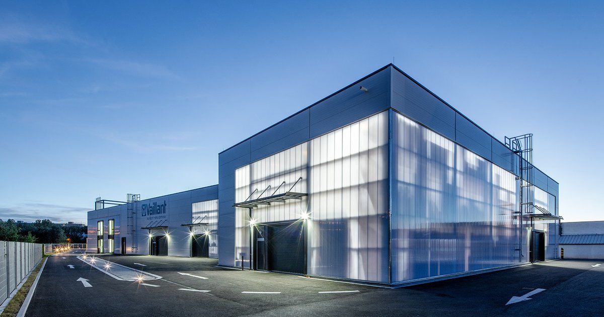 The untraditional building tries to address questions of how it’s possible to open a technology complex to the public, and how it’s possible to deal with the need to place three separate buildings on a fairly small site while maintaining functional traffic and operational relations. Three storage and showroom hall in Ceske Budejovice, Czechia.