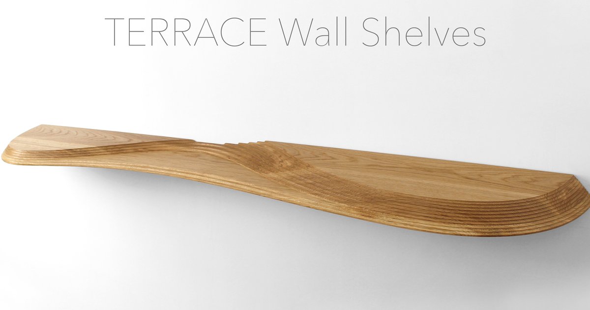 Terrace is a set of three beautiful, contemporary wooden wall shelves whose designs reference terrace farming practices employed in some mountainous regions of the world. Each piece aims to be functional art, with the ?terraces? carved from the wood to form smooth, sweeping contours that impart a sculptural beauty and elegance.