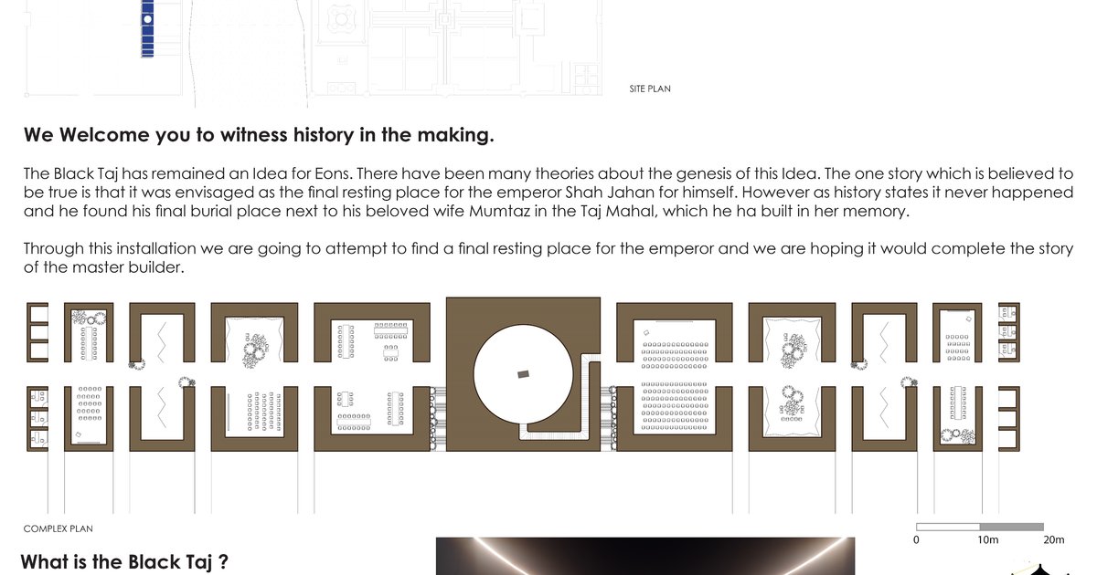 The Taj Mahal is the most celebrated monument in India. Its grandeur is unparalleled and unquestionable. Our project is a temporary installation which would channelize the authority of The Taj to draw people's attention to the plight of the not so celebrated monuments, and through its ephemeralness the installation would sensitize the citizens...