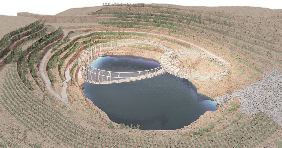 A creative project, which provides a new ecosystem to heal the whole place. The projected forms make a good counterpoint withinthe landscape, questioning the excavation and proposing a new green future of the area.