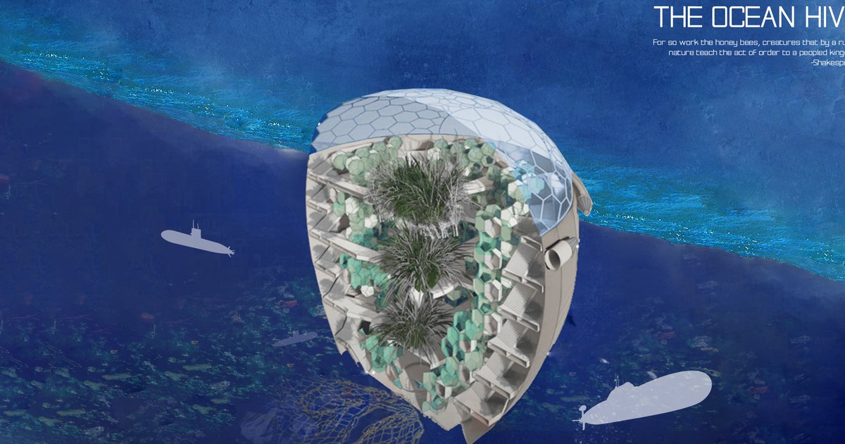 The base of The Ocean Hive starts with just 20 units. It starts to expand as it collects garbage from the ocean, processes it with heat of the sun, uses it for 3d-print. According to the colony needs, it has the capacity to grow as much as the physical conditions allow. Gathering of units with emergency compartments below them make up a Hive.