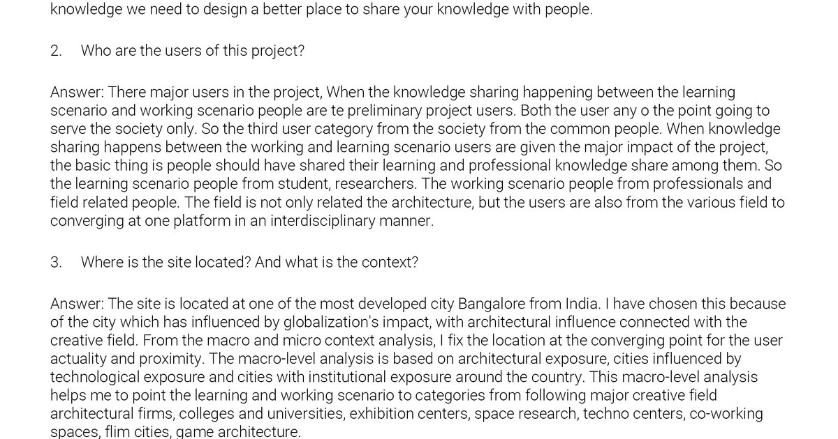A KNOWLEDGE SHARING SPACE Designing a system to create a sustainable architectural community, Whose needs are satisfied through an interdisciplinary approach.
