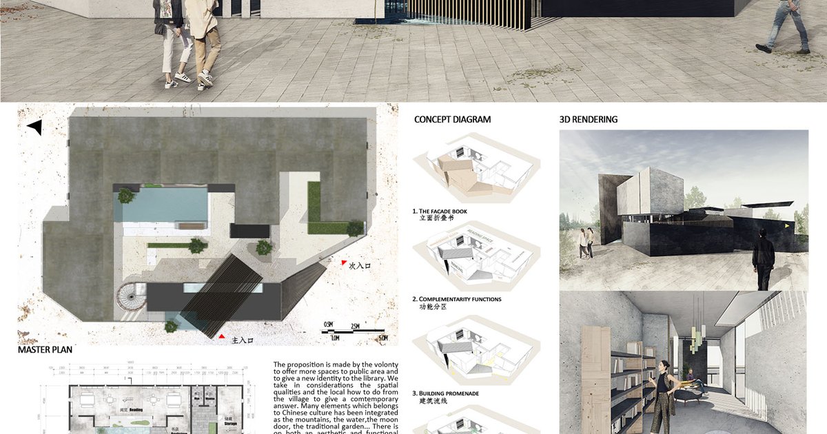 The project is defined by its initial structure and the extention proposed which make the transition from exterior to interior with a delicate play of light. The "facade book" inspired by the local ways, stand up as a landmark for the village.
