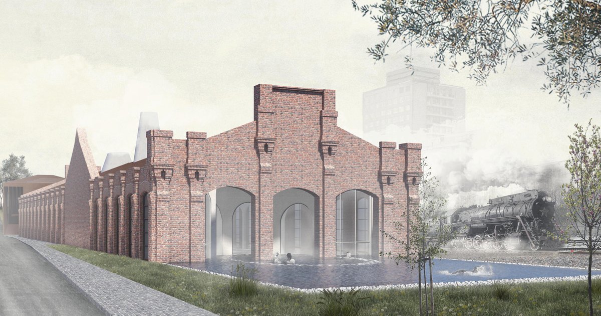 This project is dedicated to renovation of an abandoned steam engine house. The new function is based on its physical form and history. The old steam engine house, by retaining its symbolic role of being a “hospital” for trains, becomes a place of restoring physical and emotional conditions and improving the functionality of the human body.