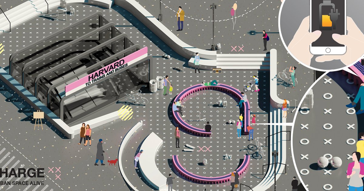 ?U+Charge? is a set of urban furniture module designed for public squares in Boston area which provides people with reconfigurable street benches equipped with solar charge stations.