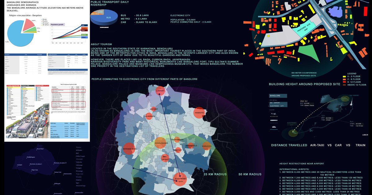 THE PROJECT IS A TRANSIT INFRASTRUCTURE WHERE ONE CAN BOARD INTO A VERTICAL TAKEOFF LANDING VEHICLE KNOWN AS AIR TAXI. THIS TYPE OF TRANSPORTATION IS FASTER AND REDUCE THE TIME TAKEN TO TRAVEL. THE SITE IS LOCATED IN THE ELECTRONIC CITY OF BANGALORE. ACCORDING TO THE DATA IN 2019 BANGALORE IS THE MOST CONGESTED (TRAFFIC CONGESTION) CITY IN THE WORLD.