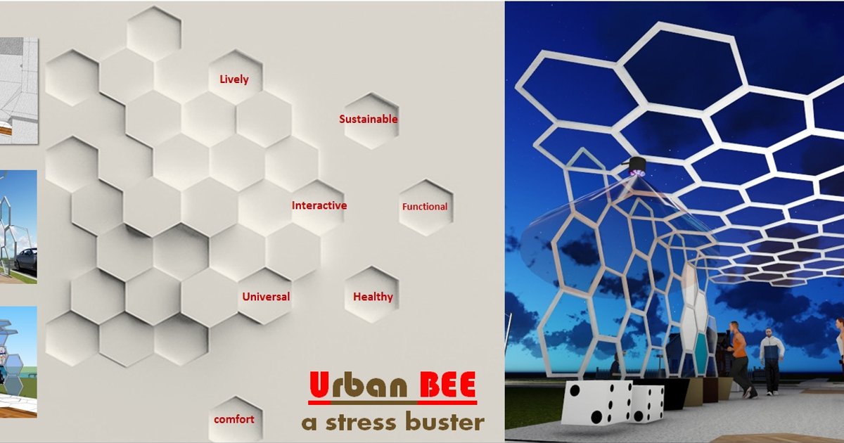 Now a days life became very busy due to hectic work schedule. Around 3 million working people of world carrying stress daily. Urban BEE ? a stress buster is urban magnet , a built form, a multi functional urban furniture , modular, designed for all age groups, universal design , very interactive, promoting the people to take care if their health.