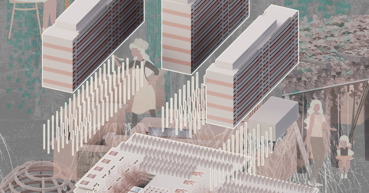 The 'Parasite and Host' relationship between an inserted urban sanctuary and a typical public housing 'podium + tower block' typology in Singapore. A tropical urban living room providing urban fabric of life that favors interaction in the community, which enables deep dive into collective community values, emotion and spirit of life.