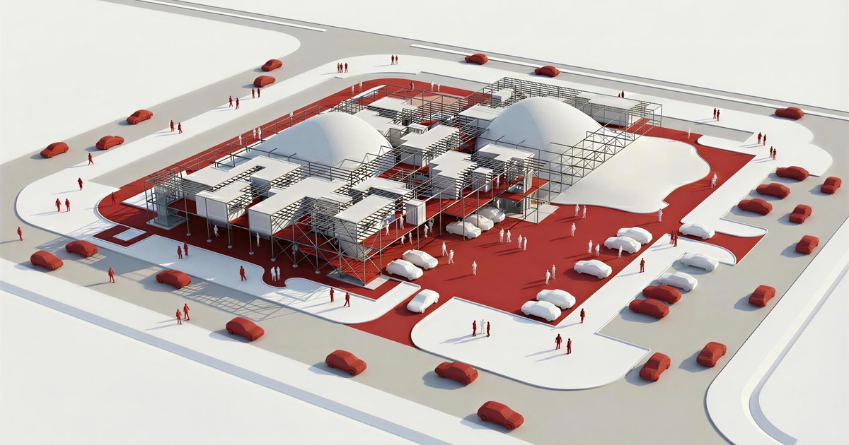 Van-Der Arena responds to the abstraction created by the digital nature of e-sports by transforming virtual actions into a shared physical experience. Rather than functioning as a conventional arena, it gathers these actions within tangible architectural spaces. Modular units serve players and spectators, while collective areas beneath two hills enable commu