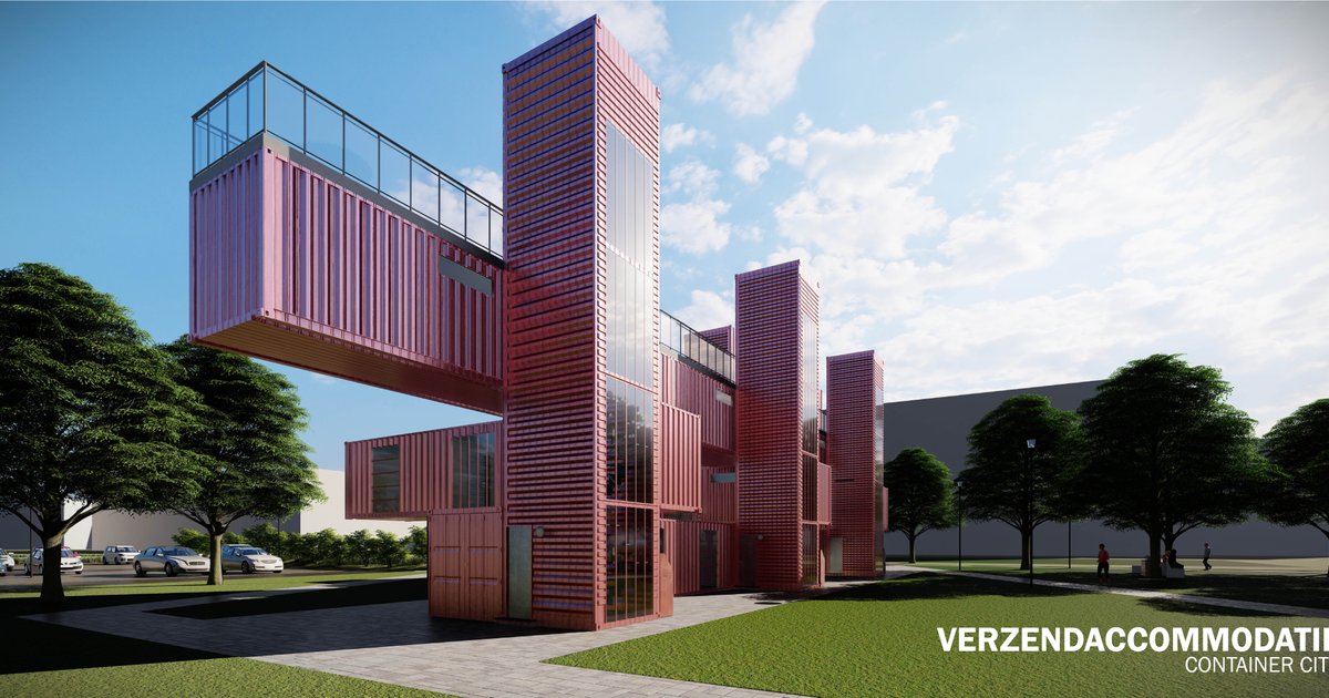 A student housing modular concept for the Amsterdam University College designed from 15 shipping containers arranged effectively.