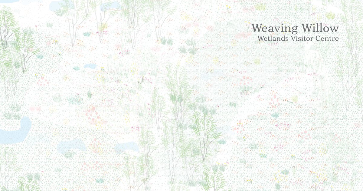 Weaving, observed as essentially an act of intertwining twigs and strands of a plant, stems or grass into an object, is in this case observed abstracted of the strands and twigs, and as an intertwining of two wholes - the wetlands - as natural environment, and a building - a man made object that is inevitably disrupting nature by only its being.
