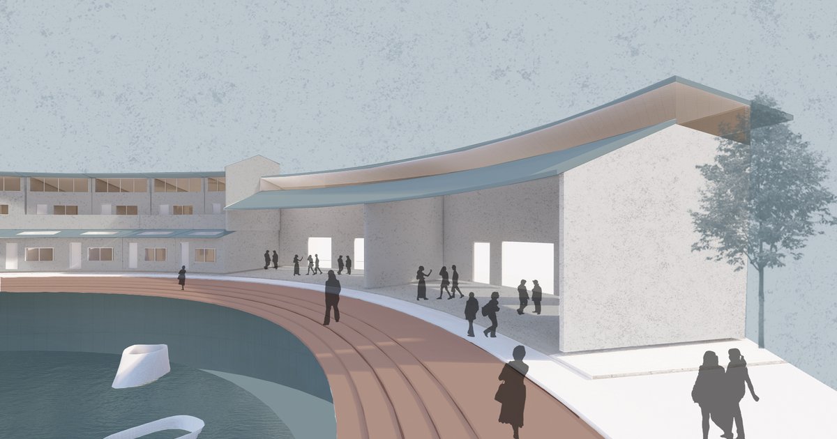 This project envisions a flood-resilient waterfront neighborhood in Lisbon, responding to the threat of rising sea levels while enhancing community engagement and sustainability. The design aims to mitigate flooding using natural, eco-friendly solutions that integrate architecture and landscape, rather than relying solely on engineering interventions. At the heart of the design is a sponge system, comprising a central depression and an underground, cave-like structure. This structure, made from semipermeable materials, slows floodwaters by clashing with its organic, curved surfaces. Water is retained and gradually percolates into the ground, helping recharge groundwater levels. The bio-swales along the site’s edges further manage water flow and filter pollutants, working in harmony with the surrounding marshy vegetation and dense forest areas. The residential units, arranged concentrically around this sponge system, are divided into 30 sqm and 60 sqm dwellings. The larger units are placed on the ground level, while the smaller units are elevated, ensuring optimal sunlight and ventilation. The units are connected via shared corridors and buffer spaces, offering both privacy and community interaction. The concentric layout allows all dwellings to overlook the central landscape, providing a scenic, open view. In addition to housing, the design includes community spaces such as markets, squares, and play areas. A diagonal pathway lined with bio-swales leads from the acute-angled entry point to the residential area, serving both as a flood mitigation feature and a social spine for pedestrian movement. The neighborhood is further enriched by oyster farming, leveraging the site’s proximity to water to foster sustainable aquaculture and boost local livelihoods through tourism, training, and restaurants. The project is designed to be modular and replicable, adaptable to other coastal regions with similar flood risks. Over time, the site will evolve into a self-sustaining ecosystem with robust flood management, enhanced biodiversity, and community-driven economic growth. This flood-resilient model balances environmental sensitivity with social and economic vitality, creating a blueprint for sustainable coastal living.