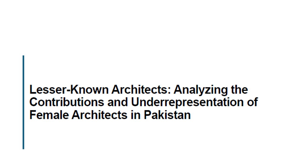 This essay explores the significant gender disparity, under-recognition, challenges for females in the field of architecture in Pakistan, where female architects face a lack of support and limited opportunities. The essay highlights significant yet lesser-known architects like Yasmeen Lari, Fauzia Hussain Qureshi and Parveen Rehman. Their contribution in the field is particularly community based, humanitarian, and conservation projects. However, these architects faced limited recognition on the global stage which reflects the underrepresentation of non-western architects particularly females involved in socially responsible work. Despite challenges, Yasmin Lari emerges as the most renowned female architect, noted for her extensive humanitarian work and contributions to sustainable design. Fauzia Qureshi and Parveen Rehaman have made remarkable contributions as well. A key observation is that most of the renowned female architects in Pakistan are primarily involved in community based, humanitarian or conservation projects rather than large-scale commercial ventures. However, most of the contributions are underappreciated especially when compared to global recognitions of their male counterparts like Kamil Khan Mumtaz and Nayyar Ali Dada. This imbalance suggests that the professional landscape in Pakistan remains male-dominated, with Lari’s achievements standing as an exception rather than the norm. The essay highlights how these women work through challenges in the male dominated field and points out problems like gender bias, cultural constraints and socio-political issues that keep these female architects in Pakistan from being more recognized and influential. By examining their careers, this essay sheds light on the systemic barriers preventing architects from regions like Pakistan from receiving the international recognition they deserve.