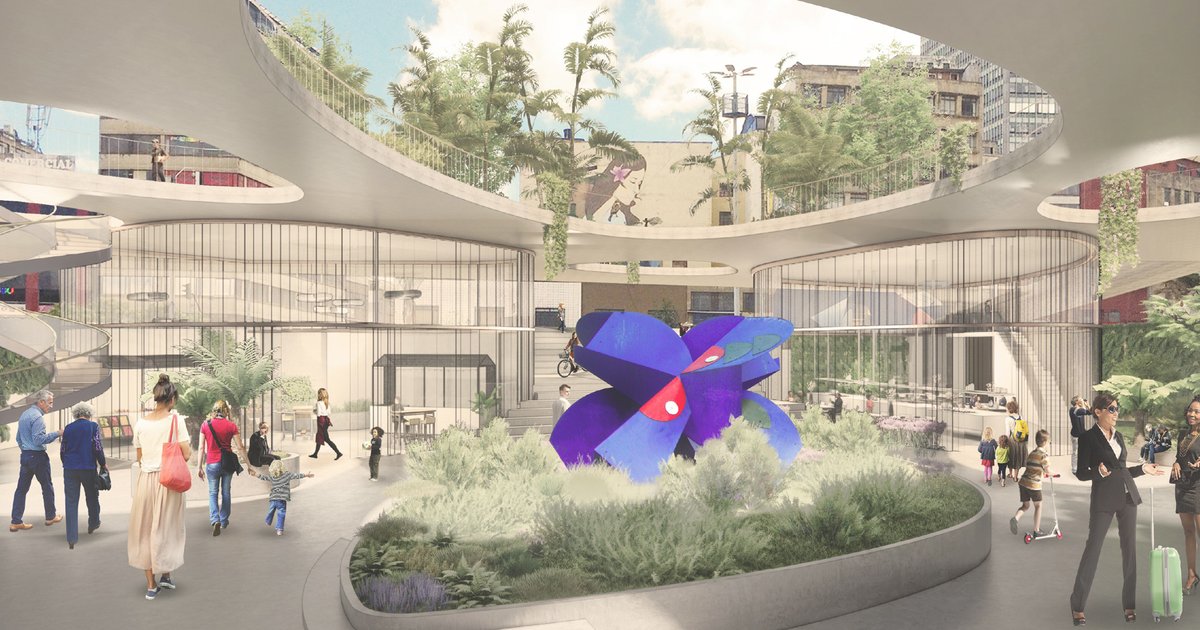 San Victorino Square in Bogotá, with its Mariposa monument, is a vibrant hub of informal commerce, an essential activity for the Colombian culture. The project intends to lower the square and add a double level. These enhancements aim to improve pedestrian flow, preserve existing commerce, maintain cultural identity, and promote social cohesion.